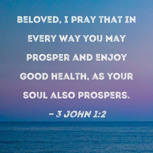 Beloved, I pray that in all respects you may prosper and be in good health, just as your soul prospers.